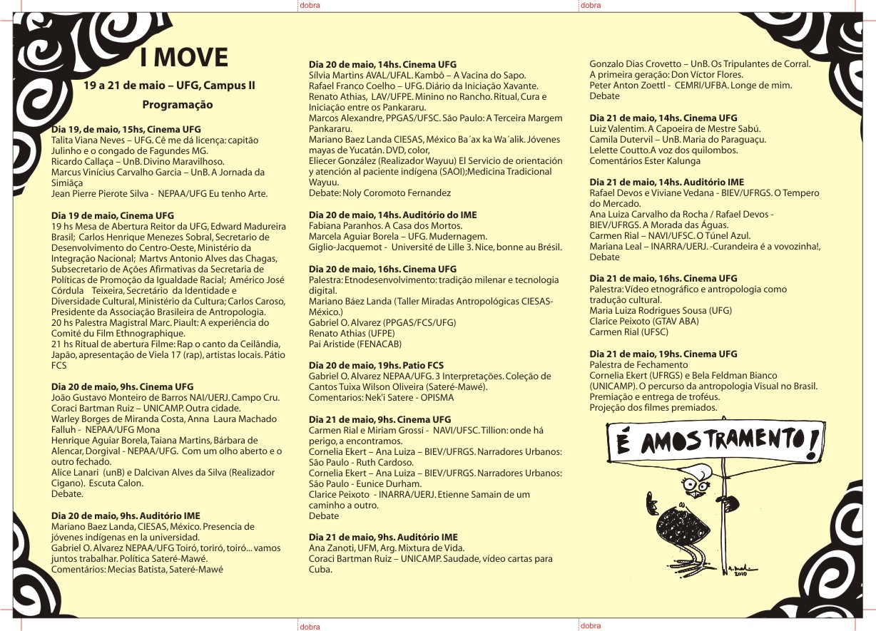 O I MOVE pretende mobilizar antropólogos visuais, realizadores de grupos tradicionais e movimentos sociais para apresentar discutir e intercambiar vídeos etnográficos. O etnodesenvolvimento, como diálogo entre o saber tradicional e o saber técnico ocidental será o ponto de encontro entre os diversos participantes.