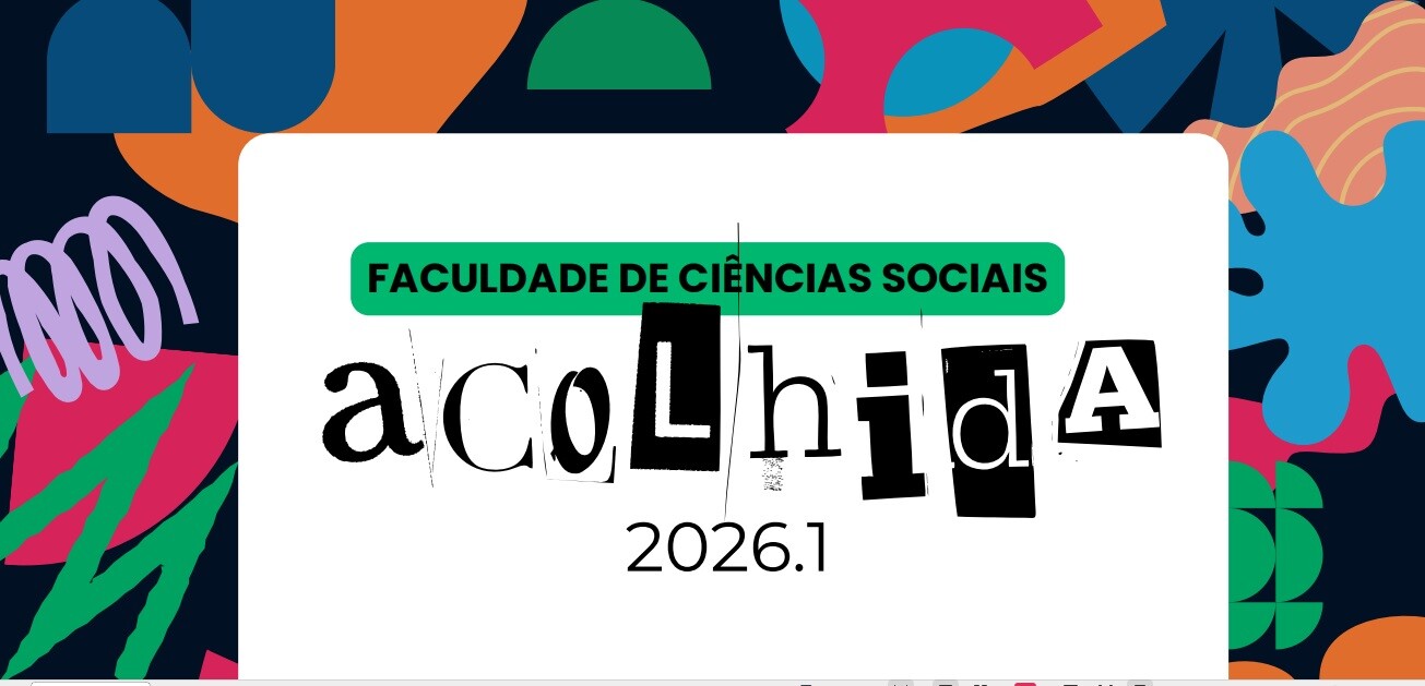 Clique aqui ou no arquivo em anexo para conferir a programação da Acolhida 2026 - 1º Semestre da FCS para estudantes dos cursos de Ciências Sociais, Museologia e Relações Internacionais.